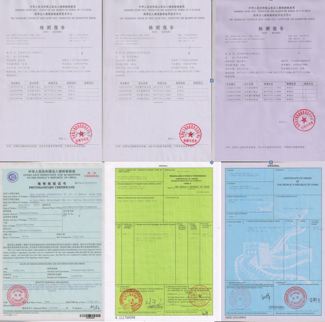 | Agréé | certificat phytosanitaire, certificat d'origine, certificat de qualité. |